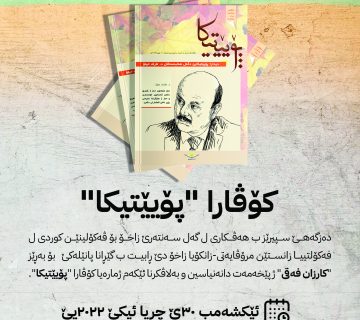 کۆڤارا “پۆیێتیکا”ZCKS25 تشرینی یهكهم، 2022کۆڤارا “پۆیێتیکا” دەزگەهێ سپیرێز ب هەڤکاری ل گەل سەنتەرێ زاخۆ بۆ ڤەکۆلینێن کوردی ل فەکۆلتییا زانستێن مرۆڤایەتی-زانکۆیا زاخۆ دێ ڕابیت ب گێڕانا پانێلەکێ بۆ بەڕێز ... زێدەتر بخۆینە